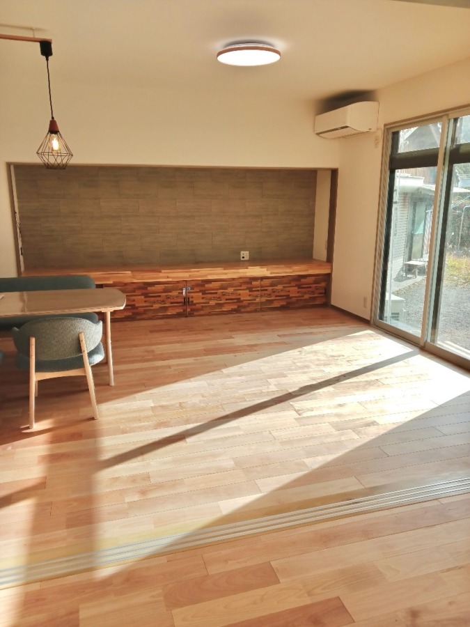 新築のように美しく仕上がったリフォームですが、ダイニングスペースから見える窓に広がる風景には、リフォームならではの趣があります。心落ち着く景色を眺めながら、穏やかな時間を楽しめる空間です。
