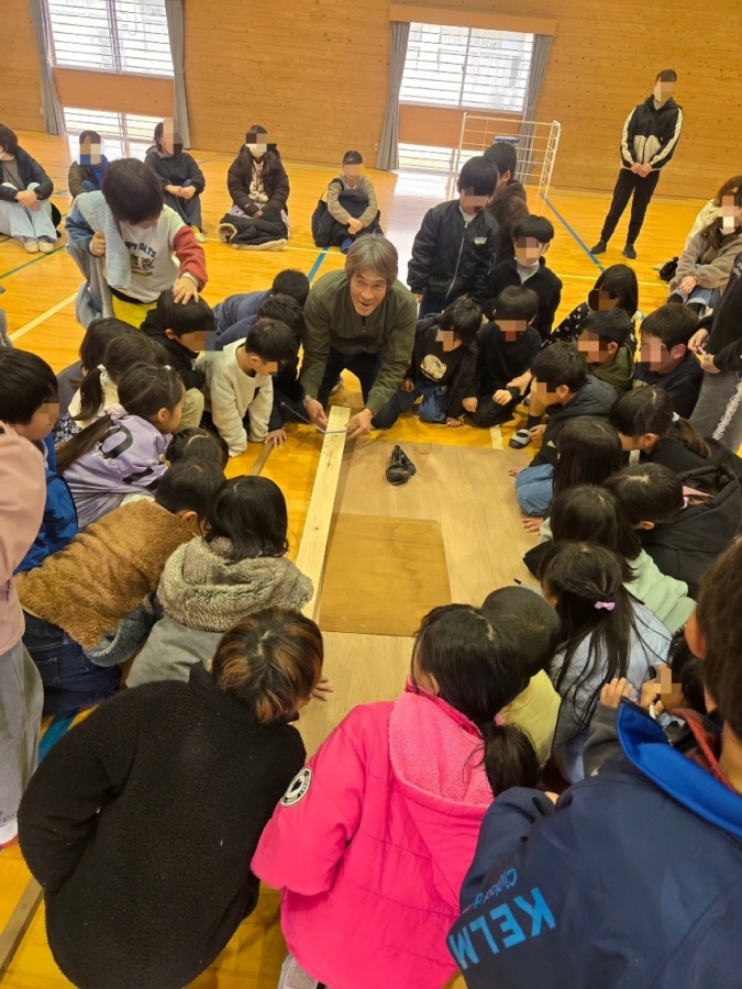 時間が少し余ったので、私の本職である大工仕事について、少しだけ講座を行いました。今はほとんどレーザーを使うのですが、家を建てるときの直角の出し方は、昔はこうやっていたんだよ!と子どもたちに説明したり、一緒に実践してみたり。少しだけのつもりが、本職ゆえに熱が入ってしまい(笑)先生に「坂本さん、そろそろ時間が……」と言われるくらい夢中になってしまいました。長洲小学校のみなさん、とっても楽しい時間をありがとうございました。貯金箱にたくさんご縁玉を入れてくださいね( ◠‿◠ )