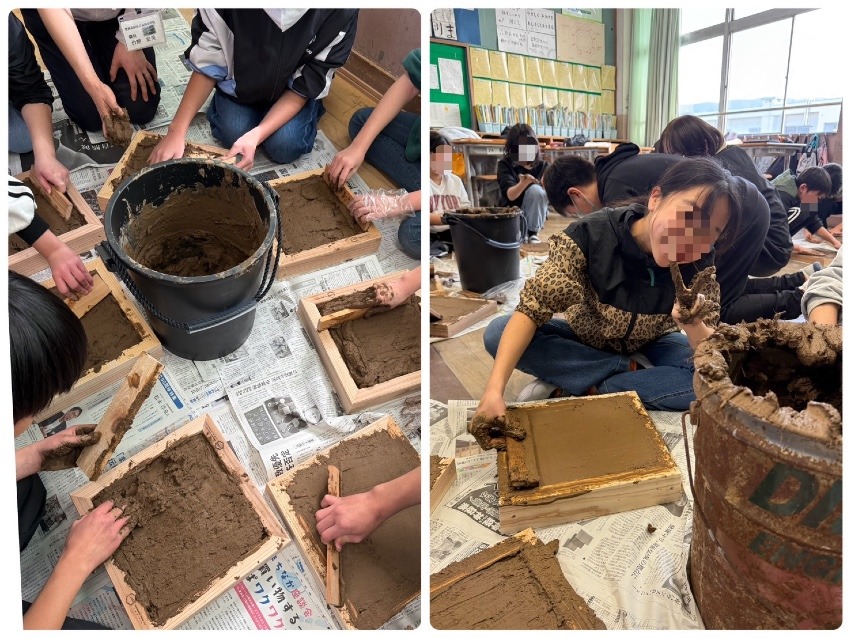 さらに、冷やした土団子は触るととってもヒヤヒヤ!土壁にすると、夏はエアコンで壁も涼しくなり、冬は暖房で壁も温まることを説明すると、子どもたちは素直に驚きや感動を表してくれました。やっぱり、こどもたちの素直な反応を見るのが一番うれしい瞬間です。